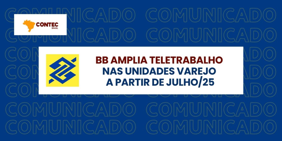 Na manhã desta quinta-feira (10/07), foi realizada reunião da Mesa permanente de negociação CONTEC/BB,  para o banco comunicar oficialmente a ampliação do modelo de Teletrabalho Institucional (TRI) nas unidades da rede Varejo. Durante o encontro, foi reforçado que a medida cumpre o compromisso assumido na última negociação coletiva e que a implementação nos novos escritórios ocorrerá ainda em julho. Também foram esclarecidos os critérios de elegibilidade, os procedimentos normativos e a previsão de divulgação da lista completa de unidades contempladas.