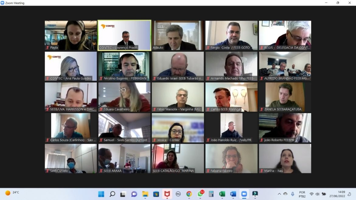 Nesta segunda-feira (27), a Comissão Executiva Bancária Nacional de Negociação (CEBNN/Contec) se reuniu com a FENABAN para dar prosseguimento aos debates da pauta de reivindicações dos bancários nesta campanha salarial 2022. Entre os assuntos debatidos: a questão da segurança bancária; as MPs 1.108 (que regulamenta o trabalho híbrido e teletrabalho) e 1.116 (que institui o Programa Emprega + Mulheres e Jovens); a manutenção de algumas cláusulas da convenção coletiva.