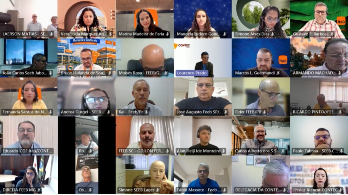 A reunião contou com a participação de dirigentes sindicais de diversas bases do país e representantes do banco responsáveis pelas áreas de relações sindicais e gestão de pessoas. O encontro foi coordenado pelo Coordenador da COE Itaú/CONTEC, Eduardo Israel, e teve abertura do presidente da CONTEC, Dr. Lourenço Ferreira do Prado, que destacou a importância do diálogo permanente entre o movimento sindical e o banco, especialmente diante dos desafios relacionados à reorganização das estruturas de atendimento, à preservação dos empregos e à defesa das condições de trabalho da categoria bancária.