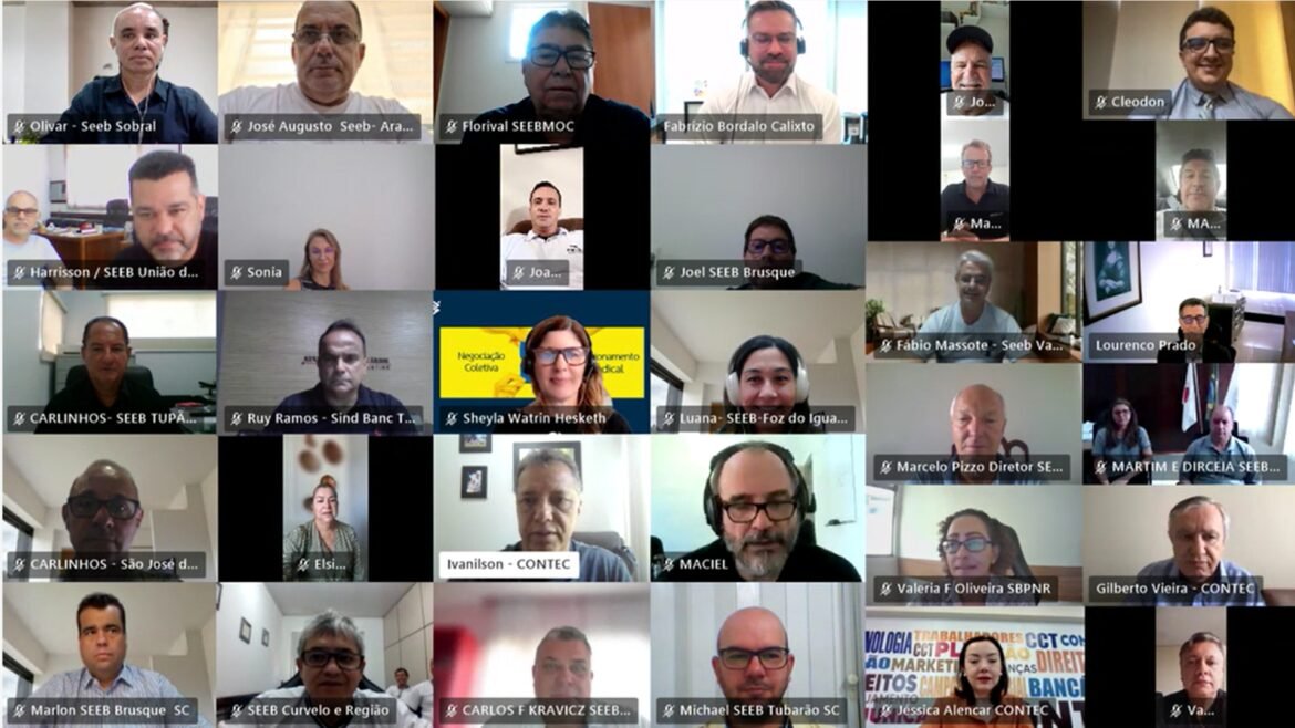 A CONTEC se reuniu com o Banco do Brasil na manhã desta quinta-feira (06/02) para debater questões relacionadas às novas funções e a situação dos caixas descomissionados que ainda não foram recolocados. O encontro, realizado de forma virtual, contou com a participação do presidente da CONTEC, Lourenço Prado, do coordenador da Comissão de Negociação, Gilberto Antônio Vieira, além de diversos dirigentes sindicais e representantes do Banco do Brasil.