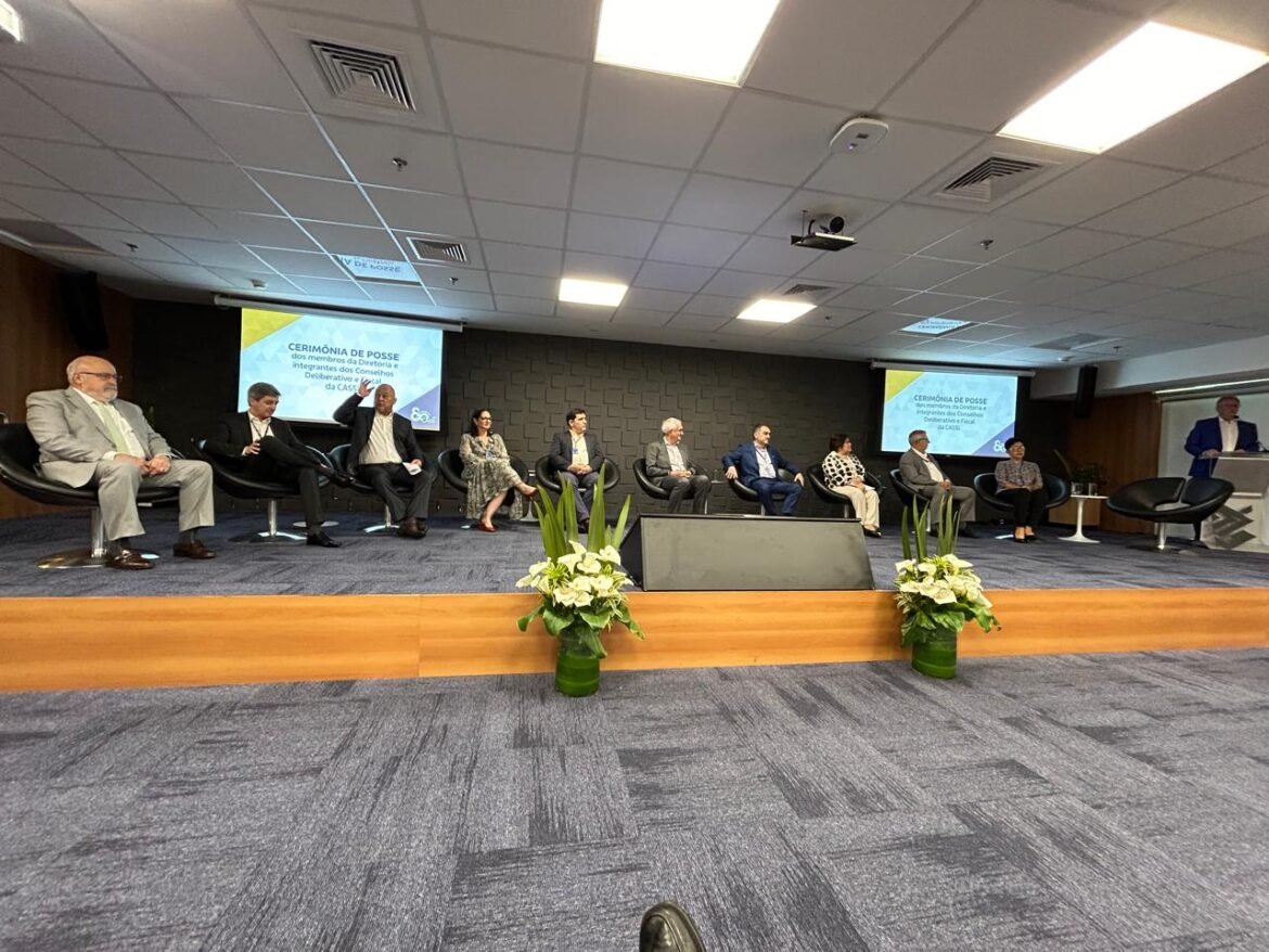 O Diretor Suplente Gilberto Antonio Vieira representou a CONTEC na cerimônia de posse dos membros da Diretoria e integrantes dos conselhos deliberativos e Fiscal da Cassi, para o mandato de 2024 a 2028, realizada nesta terça-feira (11/06/2024), no Auditório do 1° andar, torre norte, do Ed. Banco do Brasil, em Brasília/DF.