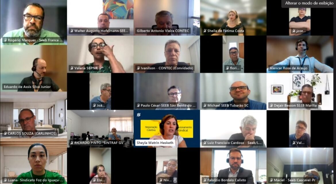 Representaram a Contec o, Coordenador da Comissão, Gilberto Antonio Vieira, acompanhado dos seguintes dirigentes: Carlos Souza, Dejair Besson, Marco Hilário e Rogério Marques (FEEB-SP/MS), Florival Cardoso Menezes, Valeria Ferreira (FEEB-MG/GO/TO/DF), Antônio Ribas Maciel, Carlos Kravicz, João Haroldo Ruiz Martins e Luana Narimatsu (FEEB-PR), Luiz Francisco Cardoso, Michael da Silva, Simone (FEEB-SC), Ivanilson Batista Luz (FEEB GO/TO), Elsie de Andrade Farias (FEEB NN), José Bonaerges, Nivaldo Rodrigues, Paulo Cesar e Valderlan Galindo (FEEB-AL/PE/RN).