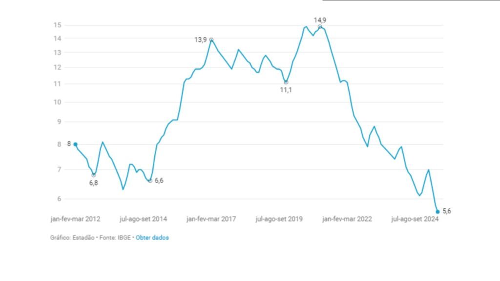 A taxa de desocupação no Brasil ficou em 5,6% no trimestre encerrado em julho, segundo os dados mensais da Pesquisa Nacional por Amostra de Domicílios Contínua (Pnad Contínua) divulgados nesta terça-feira, 16, pelo Instituto Brasileiro de Geografia e Estatística (IBGE). Foi o menor resultado de toda a série histórica, iniciada em 2012.