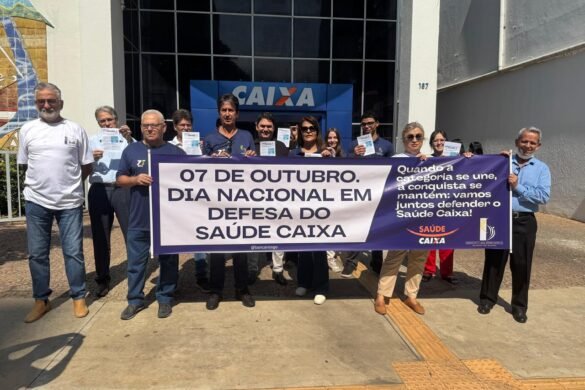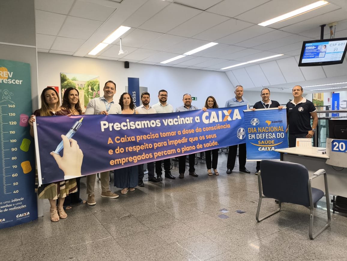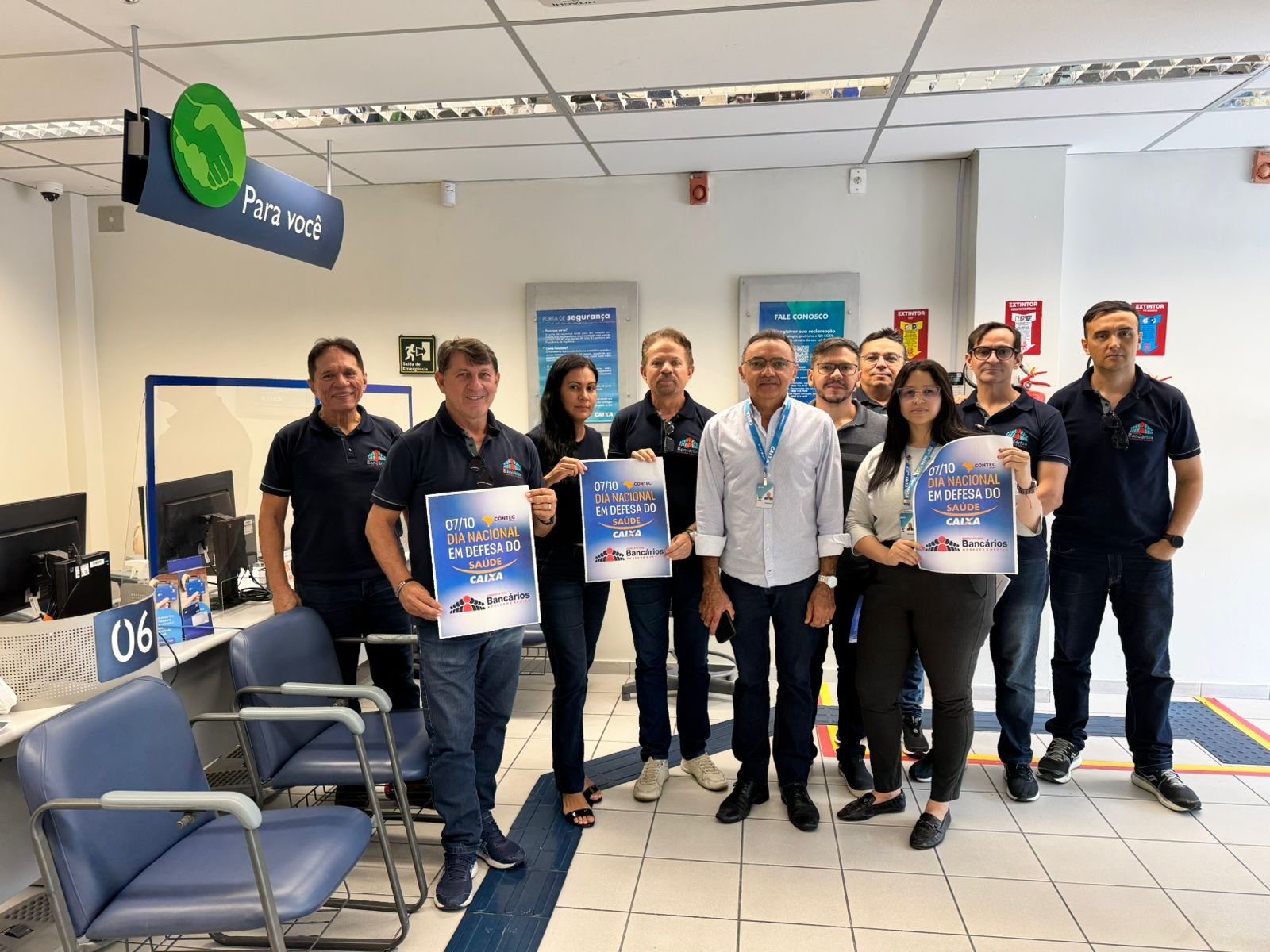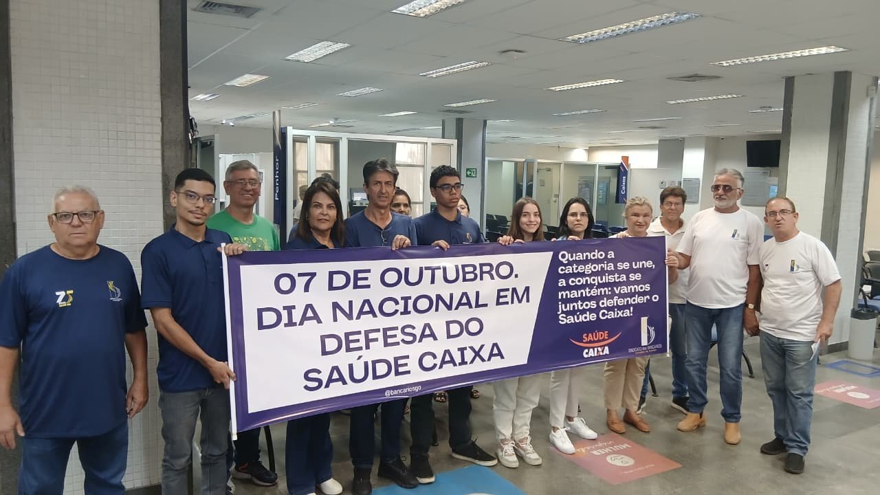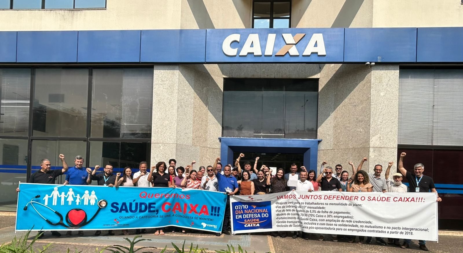 Nesta terça-feira (7/10), empregados da Caixa Econômica Federal — ativos, aposentados e pensionistas — protagonizaram uma grande demonstração de mobilização e unidade em todo o país. As manifestações realizadas em diversas agências e unidades marcaram o Dia Nacional em Defesa do Saúde Caixa, reafirmando o compromisso da categoria com a preservação e o fortalecimento do plano de saúde dos trabalhadores.