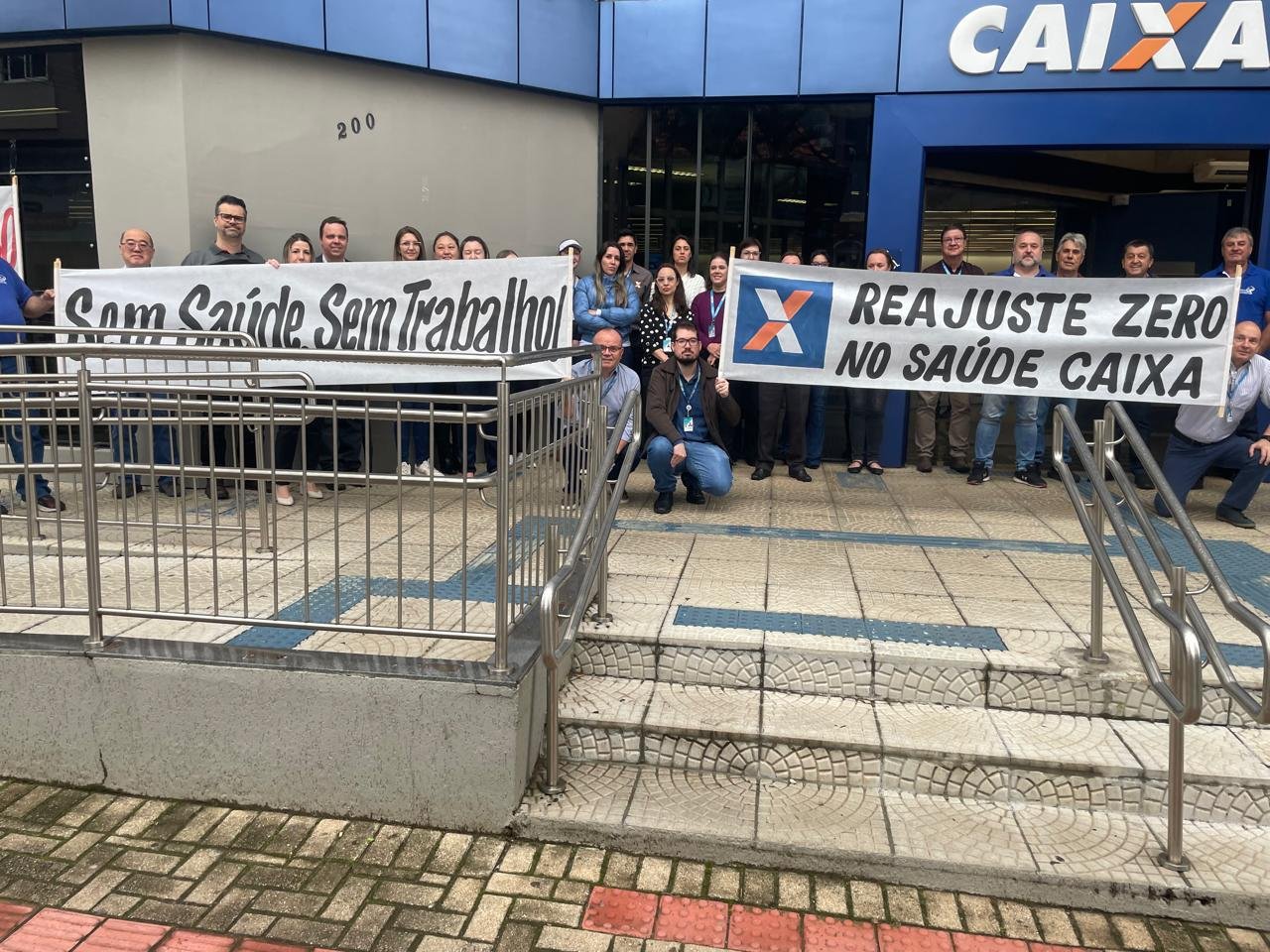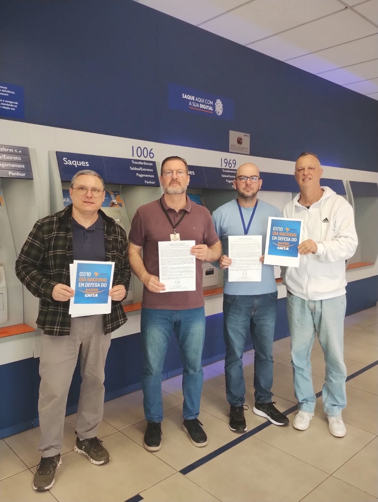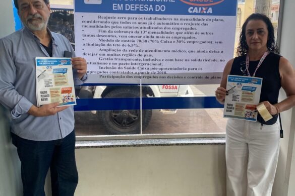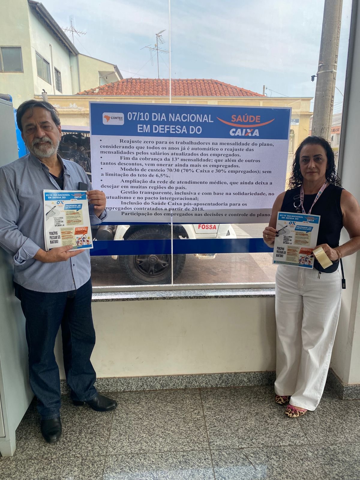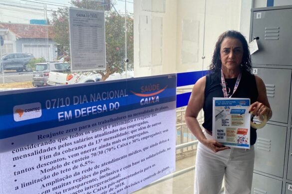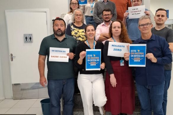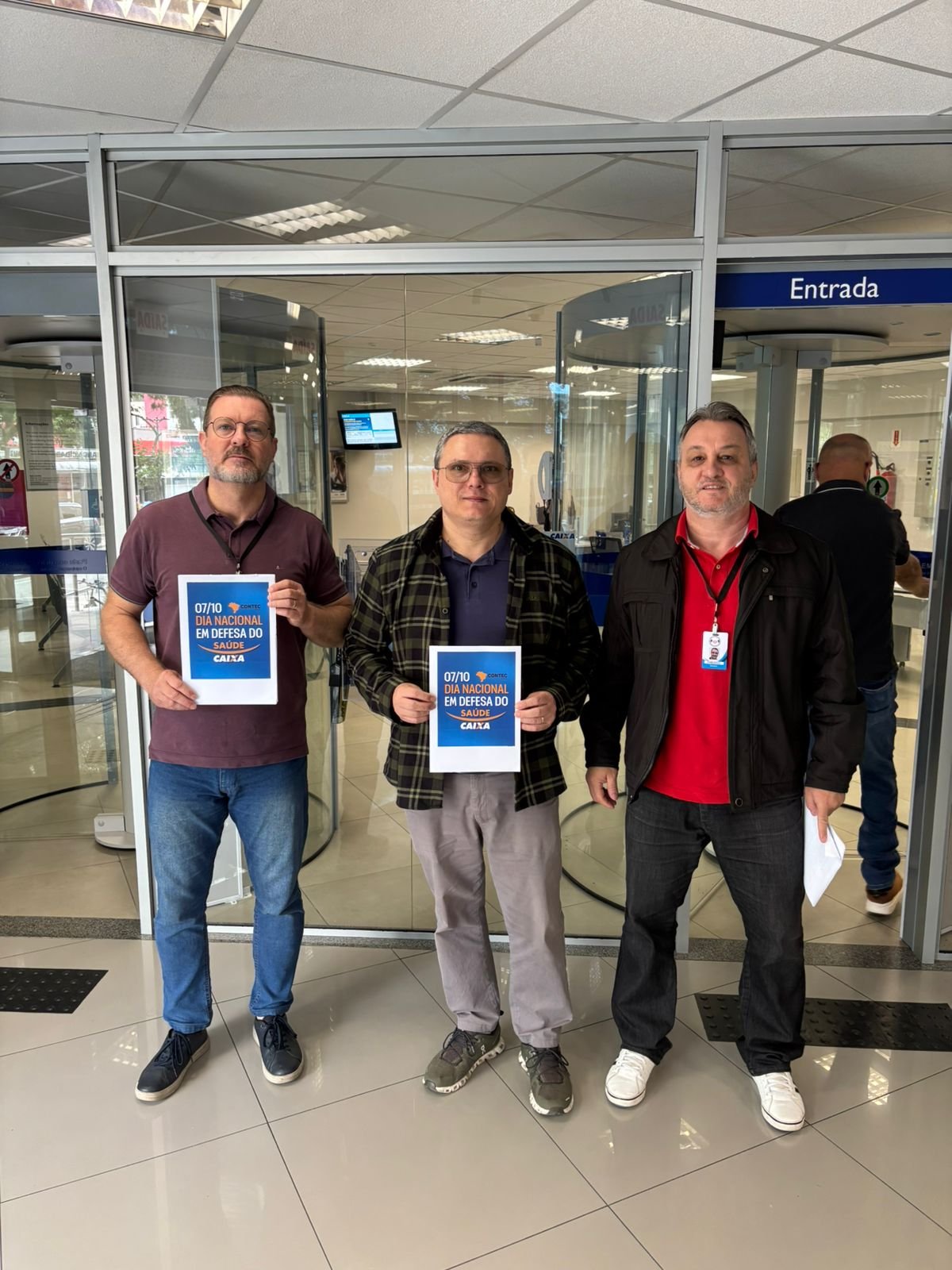 Nesta terça-feira (7/10), empregados da Caixa Econômica Federal — ativos, aposentados e pensionistas — protagonizaram uma grande demonstração de mobilização e unidade em todo o país. As manifestações realizadas em diversas agências e unidades marcaram o Dia Nacional em Defesa do Saúde Caixa, reafirmando o compromisso da categoria com a preservação e o fortalecimento do plano de saúde dos trabalhadores.