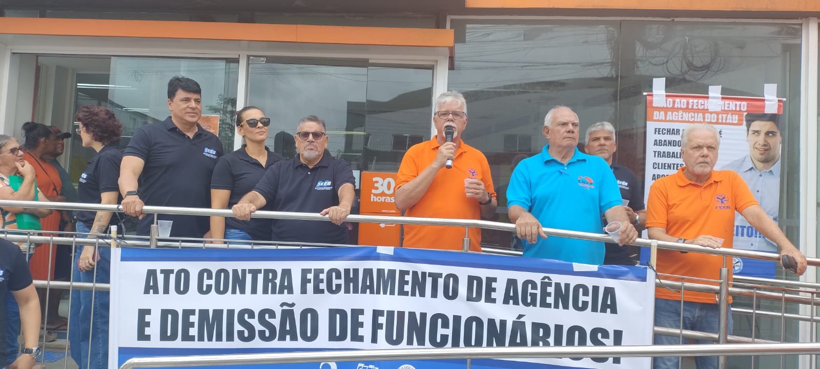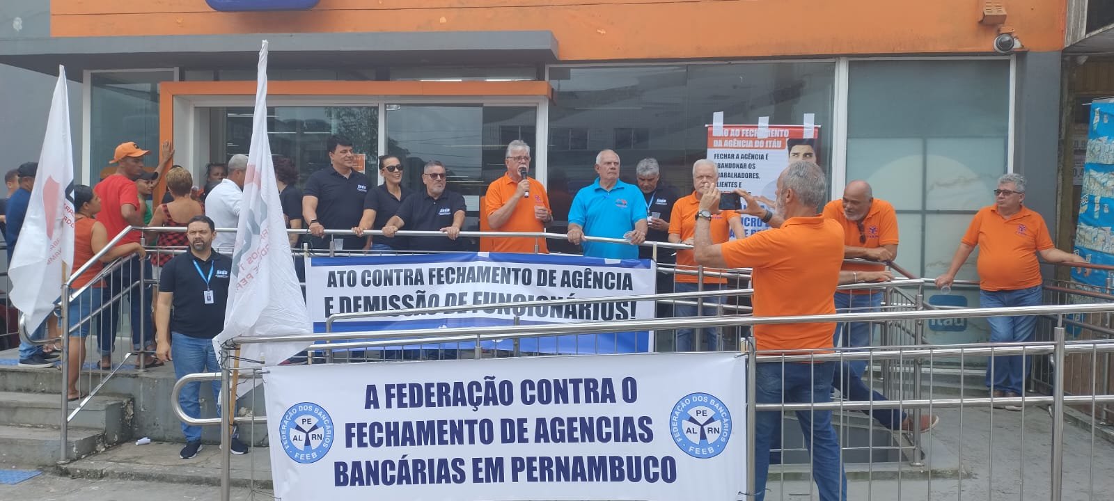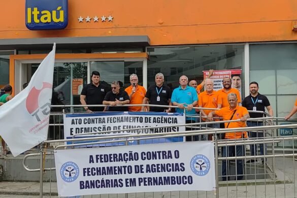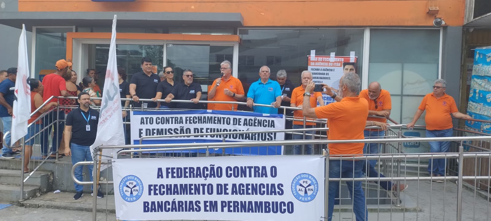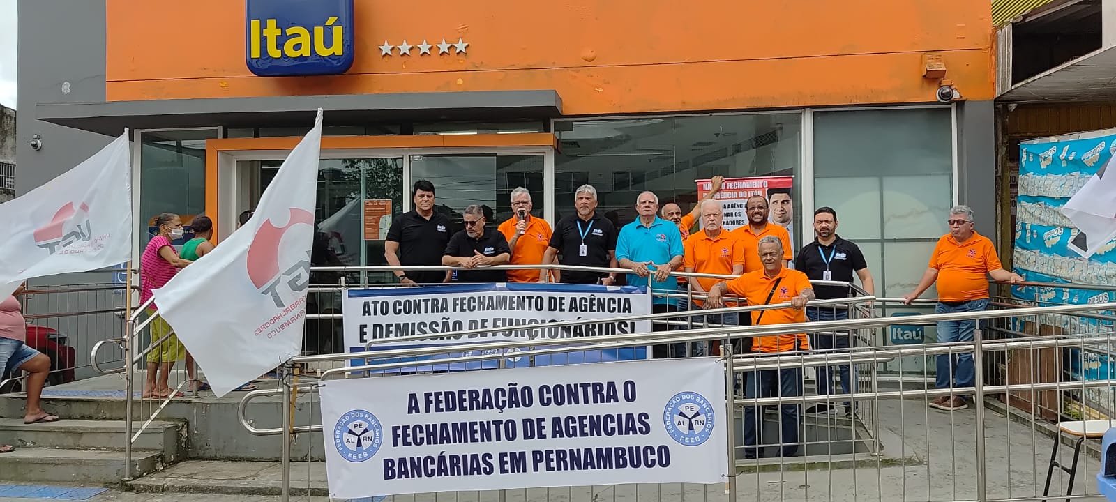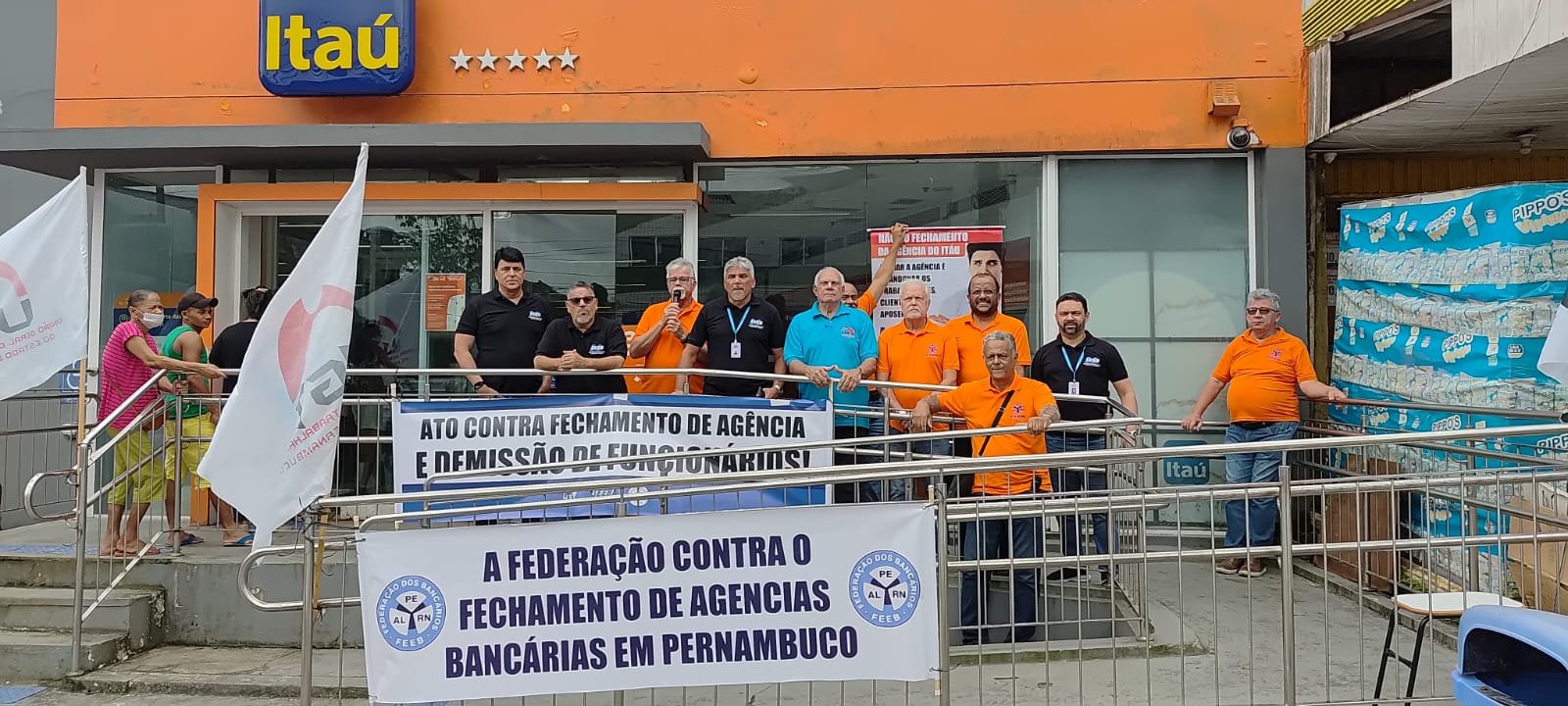 A Federação dos Bancários dos Estados de Alagoas, Pernambuco e Rio Grande do Norte (FEEB ALPERN), em conjunto com o Sindicato dos Bancários de Jaboatão e Região, realizou um ato em frente à agência do Itaú em Ipojuca para denunciar à população o fechamento da unidade e as demissões de funcionários. A FEEB ALPERN reforça sua posição contrária ao fechamento de agências em Pernambuco, por entender que a medida prejudica trabalhadores, clientes e toda a comunidade local.