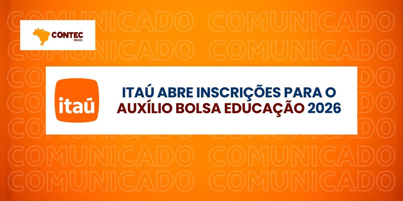 A CONTEC e a COE Itaú CONTEC informam que o Banco Itaú abriu o período de inscrições para a participação no Auxílio Bolsa Educação, referente ao ano letivo de 2026. As inscrições poderão ser realizadas entre os dias 22 de janeiro e 19 de fevereiro de 2026.