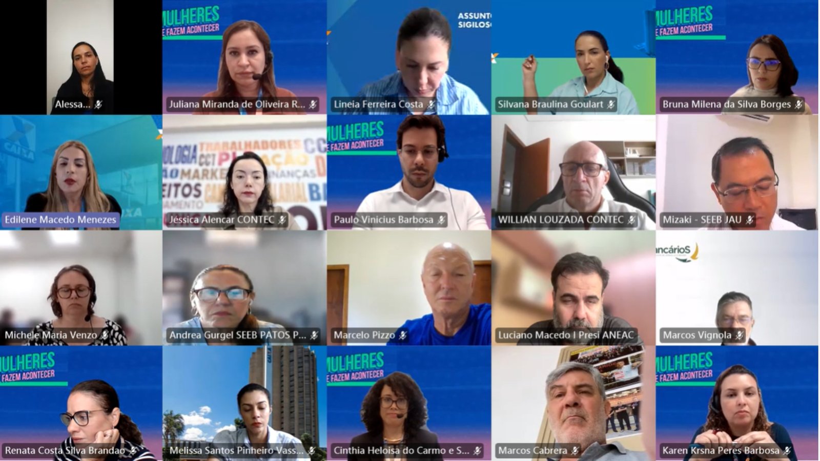 Outro ponto fortemente destacado na reunião foi a importância de envolver os homens da empresa nas ações de prevenção, formação e conscientização. A representação da CONTEC ressaltou que o enfrentamento à violência contra a mulher também exige mudança de cultura, reflexão sobre comportamentos machistas e participação efetiva dos homens nesse processo. Em resposta, a CAIXA informou que já desenvolve estudos para estruturar ações específicas voltadas a esse público.