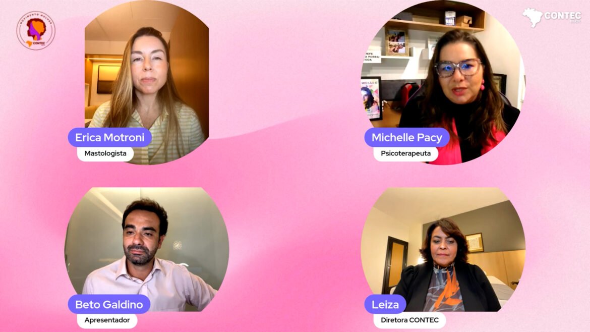 Em alusão ao Outubro Rosa, o Movimento Mulher CONTEC realizou, nesta terça-feira (21/10), às 19h, uma live especial com o tema “O toque que salva e o cuidado que acolhe”, transmitida pelo canal da CONTEC no YouTube. O encontro reuniu a médica mastologista Dra. Érica Motroni e a psicoterapeuta Dra. Michelle Pacy em um diálogo informativo, sensível e inspirador sobre prevenção, diagnóstico precoce e saúde emocional das mulheres.