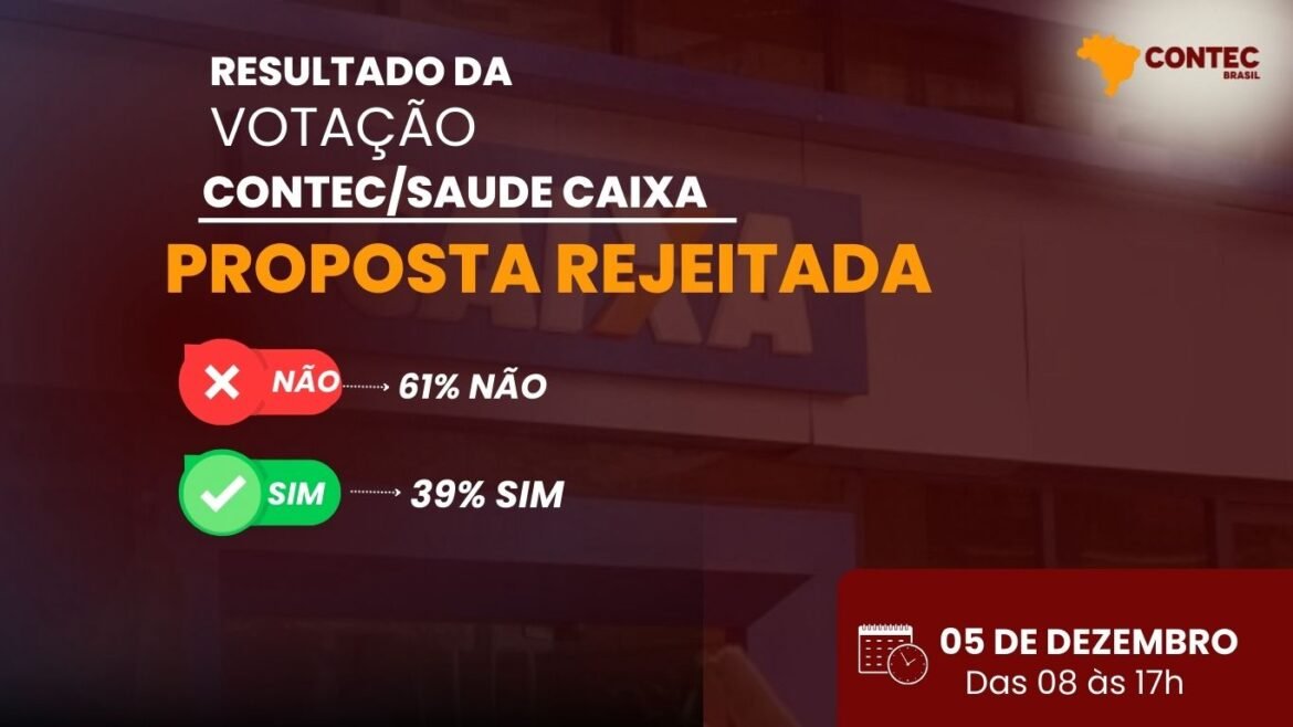Após realização de assembleia virtual nesta terça-feira (5), os empregados da CAIXA e titulares do Saúde Caixa, optaram por REJEITAR a proposta, com 61% dos votos. O aditivo indicado pelo banco para o Acordo Coletivo de Trabalho, específico do plano de saúde, foi aprovado por 39% dos empregados.