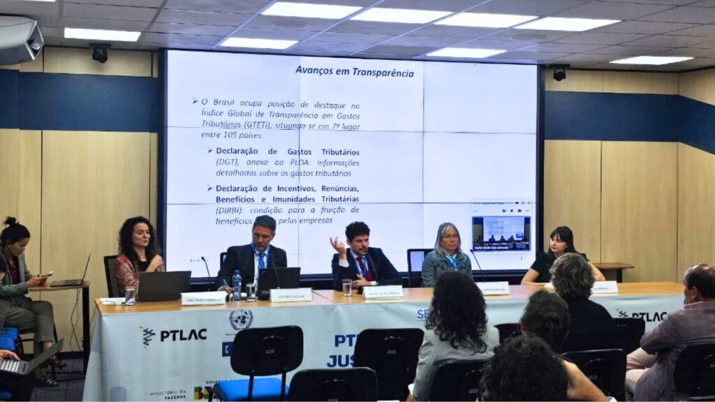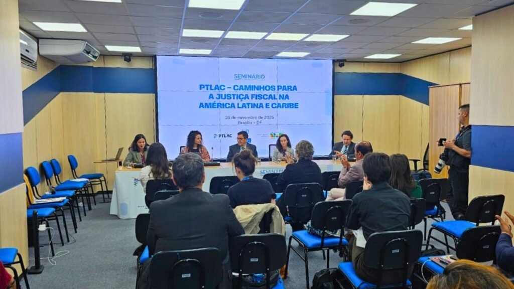 A Plataforma de Cooperação Tributária para a América Latina e o Caribe (PTLAC) realizou, no dia 25 de novembro de 2025, no Salão Nobre do Bloco R da Esplanada dos Ministérios, em Brasília, o seminário “PTLAC – Caminhos para a Justiça Fiscal na América Latina e Caribe”, evento acompanhado pela CONTEC. O encontro, organizado pela presidência brasileira da PTLAC em parceria com o Ministério da Fazenda e a CEPAL, reuniu representantes de governos, organismos internacionais, academia, movimentos sociais e organizações da sociedade civil, em um debate amplo sobre como sistemas tributários mais justos podem enfrentar desigualdades, fortalecer direitos e contribuir para a transição ecológica.