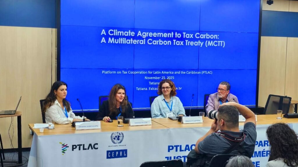 O painel final, mediado por Juliana Nascimento, aprofundou a relação entre política fiscal, desigualdades e transição ecológica. A especialista em tributação ambiental internacional Tatiana Falcão apresentou a proposta de um tratado multilateral de tributação de carbono, que permitiria alinhar metas climáticas entre países da região e evitar mecanismos punitivos de fronteira impostos por economias centrais. Com base nos slides e análises apresentados, Tatiana destacou que países latino-americanos já possuem experiências relevantes com tributos sobre carbono, e que uma estrutura regional poderia fortalecer a posição da América Latina na negociação global.