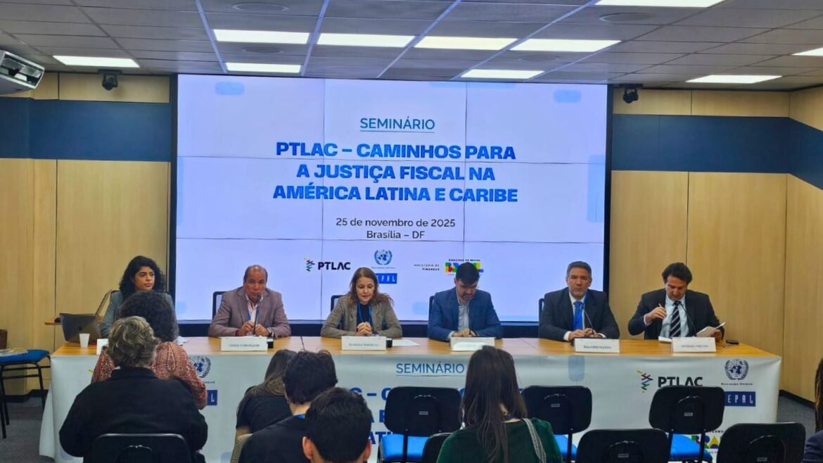 A Plataforma de Cooperação Tributária para a América Latina e o Caribe (PTLAC) realizou, no dia 25 de novembro de 2025, no Salão Nobre do Bloco R da Esplanada dos Ministérios, em Brasília, o seminário “PTLAC – Caminhos para a Justiça Fiscal na América Latina e Caribe”, evento acompanhado pela CONTEC. O encontro, organizado pela presidência brasileira da PTLAC em parceria com o Ministério da Fazenda e a CEPAL, reuniu representantes de governos, organismos internacionais, academia, movimentos sociais e organizações da sociedade civil, em um debate amplo sobre como sistemas tributários mais justos podem enfrentar desigualdades, fortalecer direitos e contribuir para a transição ecológica.