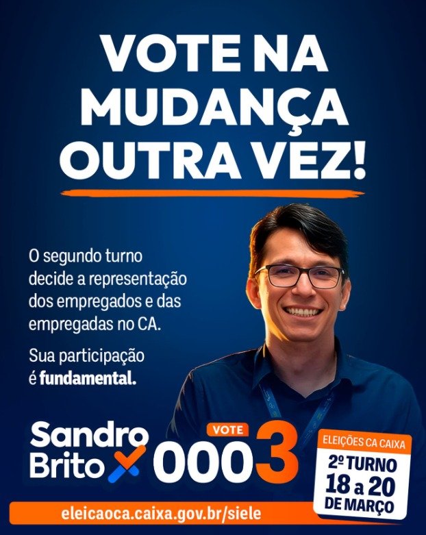 Neste segundo turno, a CONTEC manifesta apoio à candidatura de Sandro Brito, que segue na disputa pela vaga de representante dos empregados no Conselho de Administração.