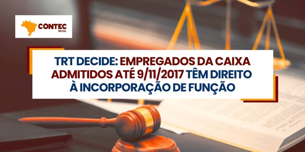Em 2020, a CONTEC ingressou com a ação quando a Caixa revogou o manual normativo RH 151, após a reforma trabalhista. A norma interna estabelecia novas condições para a incorporação de função. Na decisão, a Dra. Patrícia Birchal Becattini ratificou o entendimento de que são beneficiados todos aqueles que estavam na Caixa em 9/11/2017 e já possuíam 10 anos de função quando a norma foi revogada.