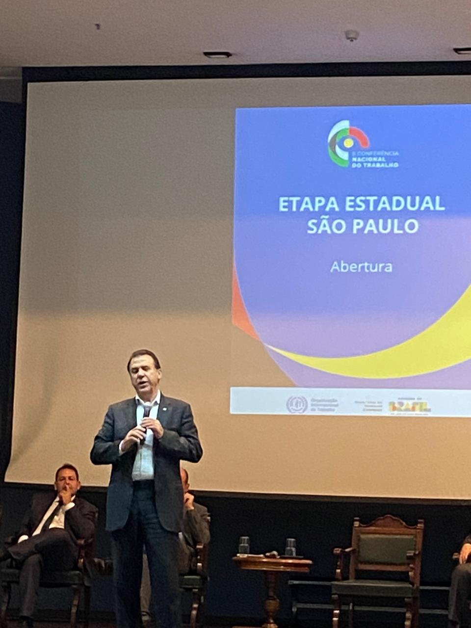 A Etapa Estadual da II Conferência Nacional do Trabalho está sendo realizada nesta quinta-feira (4), no auditório da Superintendência Regional do Trabalho em São Paulo, reunindo governo federal, centrais sindicais, entidades patronais, organizações da sociedade civil e instituições acadêmicas. A Federação dos Empregados em Estabelecimentos Bancários dos Estados de São Paulo e Mato Grosso do Sul (Feeb SP/MS) está presente por meio dos delegados Débora Ferreira Machado (dirigente) e José Augusto Ribeiro (presidente do Sindicato dos Bancários de Araçatuba), além de Carlos Roberto Lopes Bueno (presidente do Sindicato dos Bancários de Tupã) e Cristina Yassue Watanabe (dirigente), convidados pela bancada dos trabalhadores.